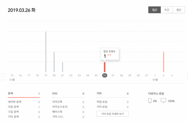 3월 26일 기준으로도 확인해 보니, 네이버는 8건, 티스토리는 1건이네요.