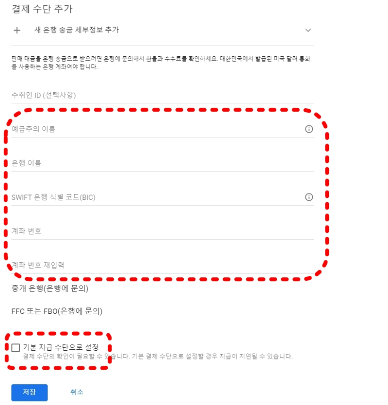 예금주 이름과 은행 이름은 영문으로 적으시고요.
