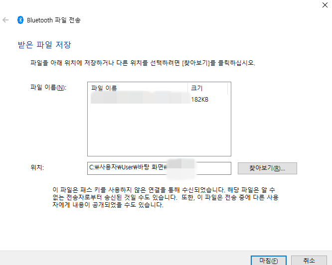 PC나 노트북에 파일을 저장할 위치를 지정하고 '마침'을 클릭하면,