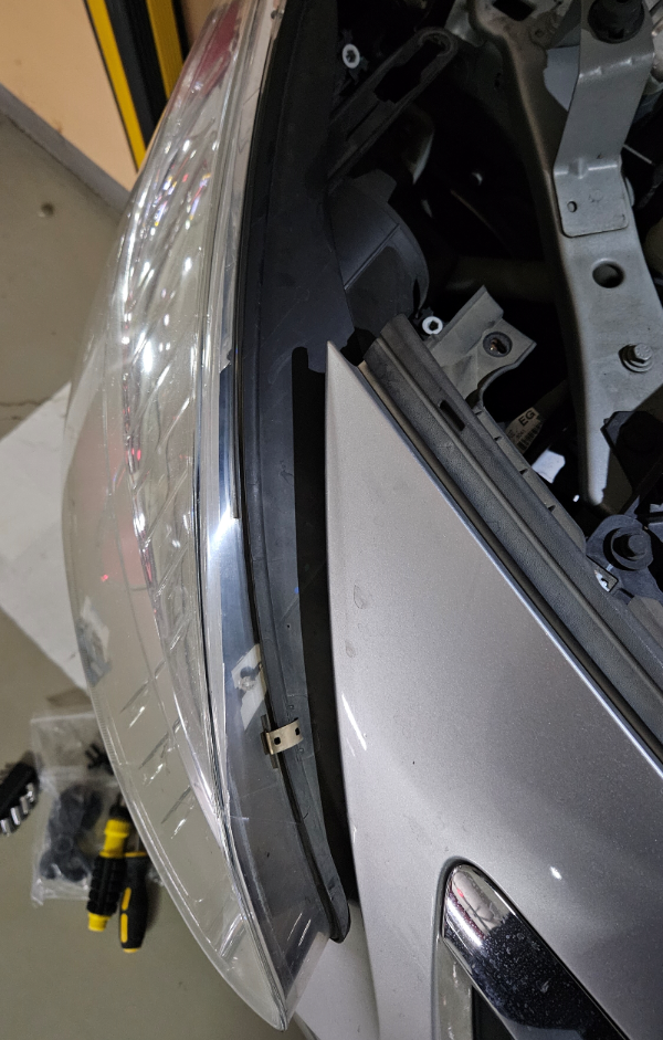 사진을 봤을 때 왼쪽 전조등(운전자 기준 오른쪽 전조등) 교체가 완료된 모습입니다.